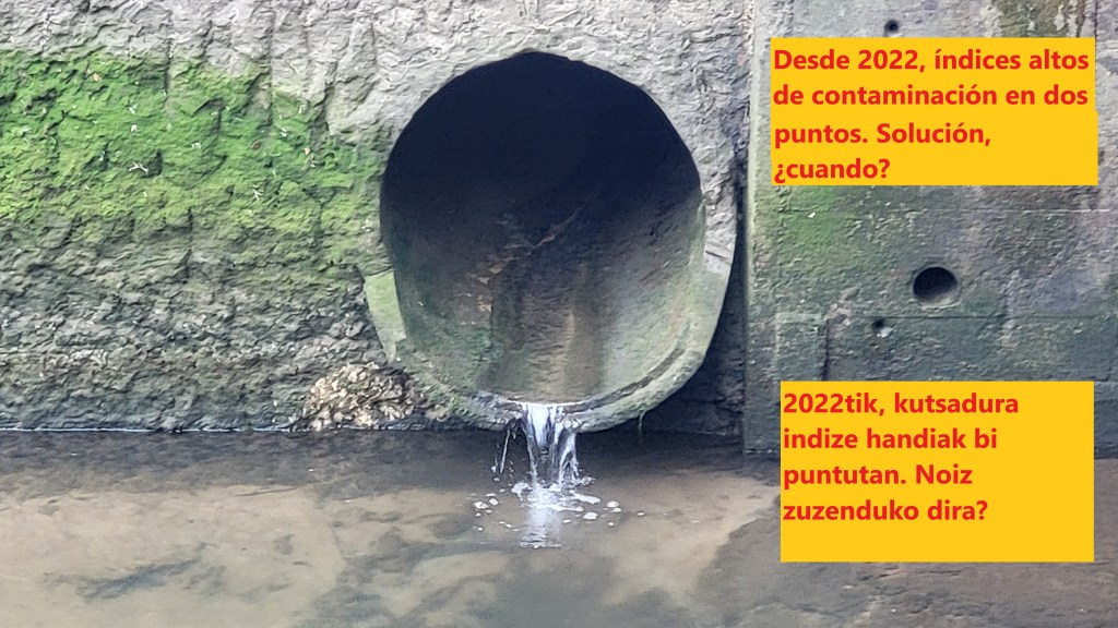 Urte honeetan guztietan emoitza hauek ikusita, isurketa horreek aztertzeko eskatu deutsagu EH Bilduren gobernuari, baina akatsak zuzendu barik jarraitzen dabe. Bagileko eta garagarrileko garai hau da etxeko saneamentuko hondakinen isuriak aztertzeko eta igesak konpontzeko unerik onena. Baina uda asko dira arazoa konpondu barik, eta horrek kalte egiten deutso itsasadarreko animalia-bizitzari eta, gainera, Bakioko bainu-eremuari.