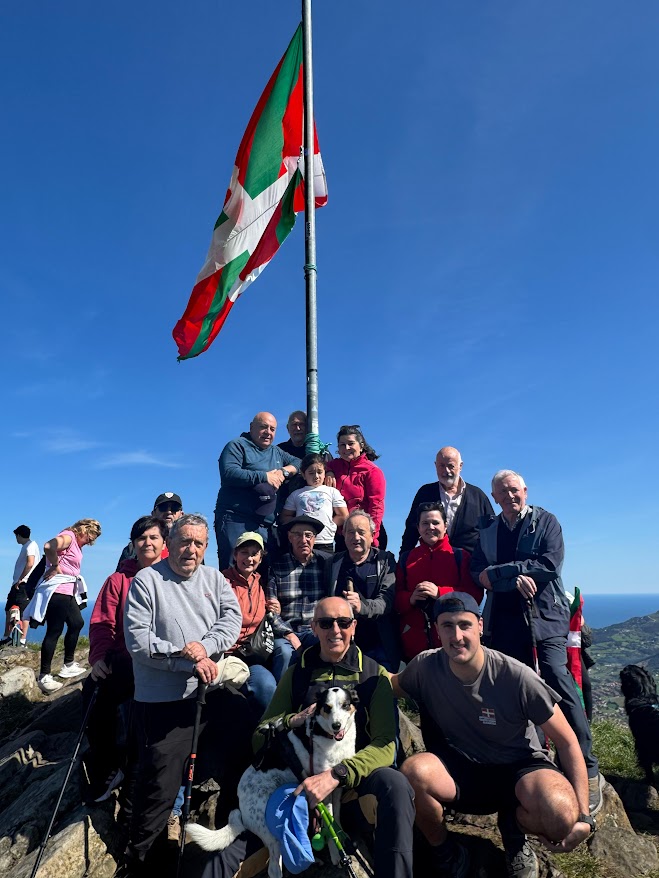 Apirilaren 4an, Jata mendian.- Urtero egiten dogun modure, bertan ospatu dogu Aberri egunaren bezpera ikurriñaren igoeragaz. Hamaiketako on bat antolatu eta gero, gure Jata mendi tontorreraino igon eta ikurriña jaso dogu.